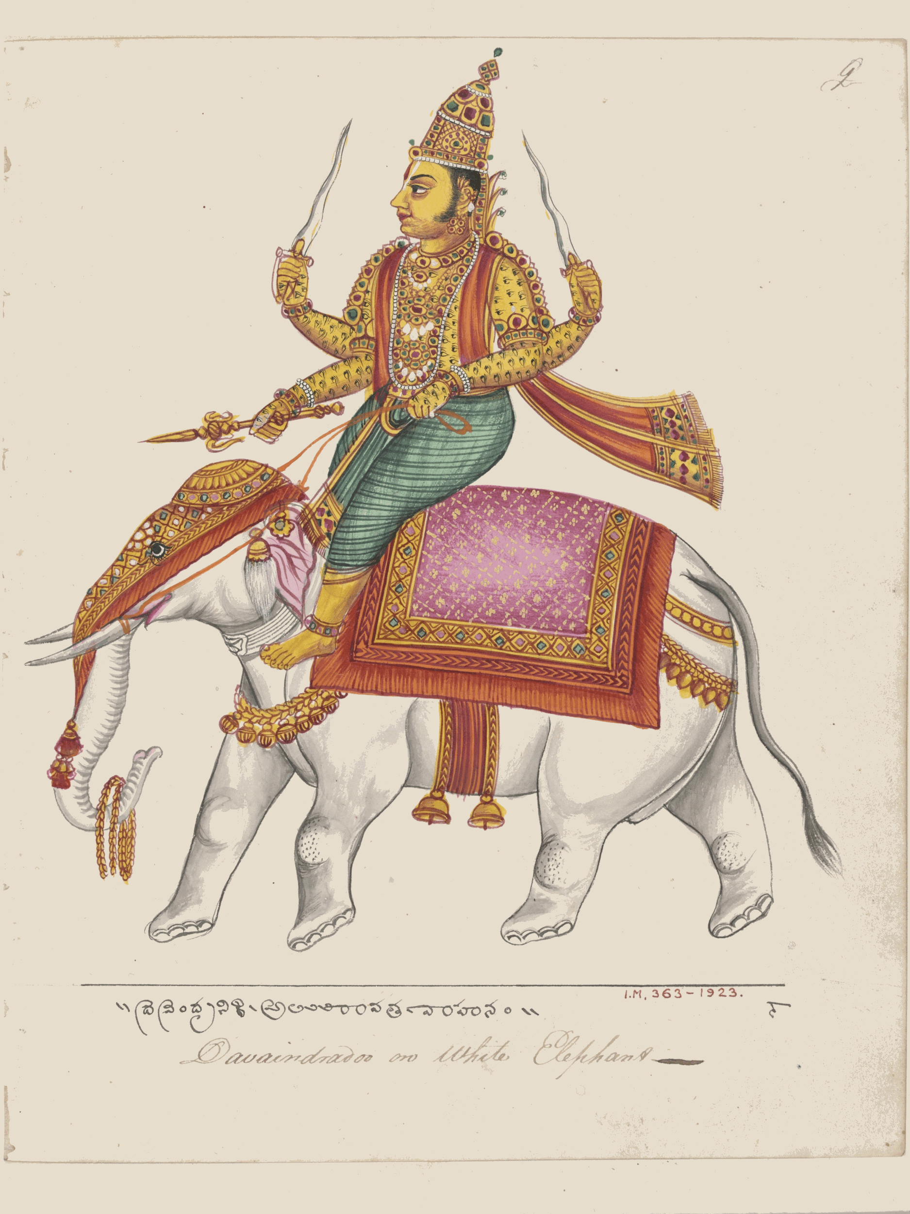 Indra, made in 1820-1825 in Tiruchchirappalli (Tamil Nadu.) Image from Wikimedia Commons