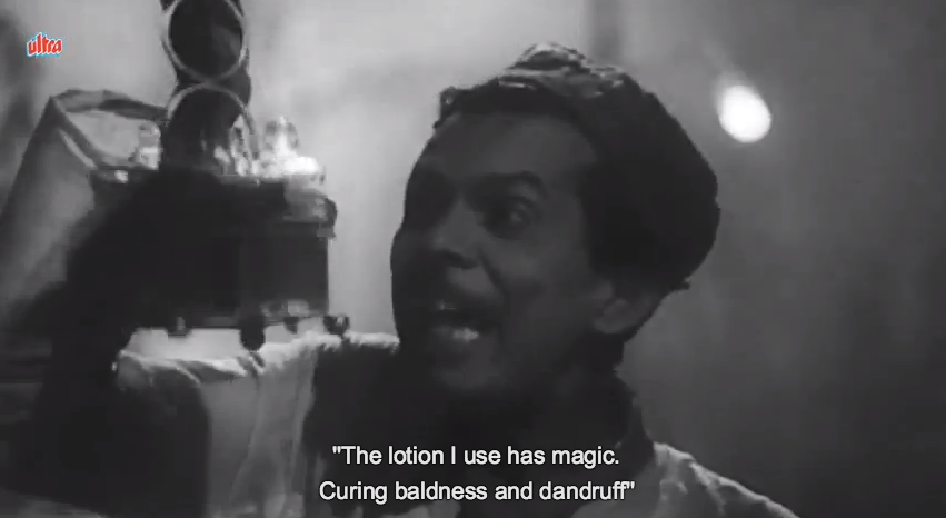 Thankfully, Abdul played by Johnny Walker lends his comedic presence to lighten the mood. This is a still from the song “Sar Jo Tera Chakraye.” 0:32:22